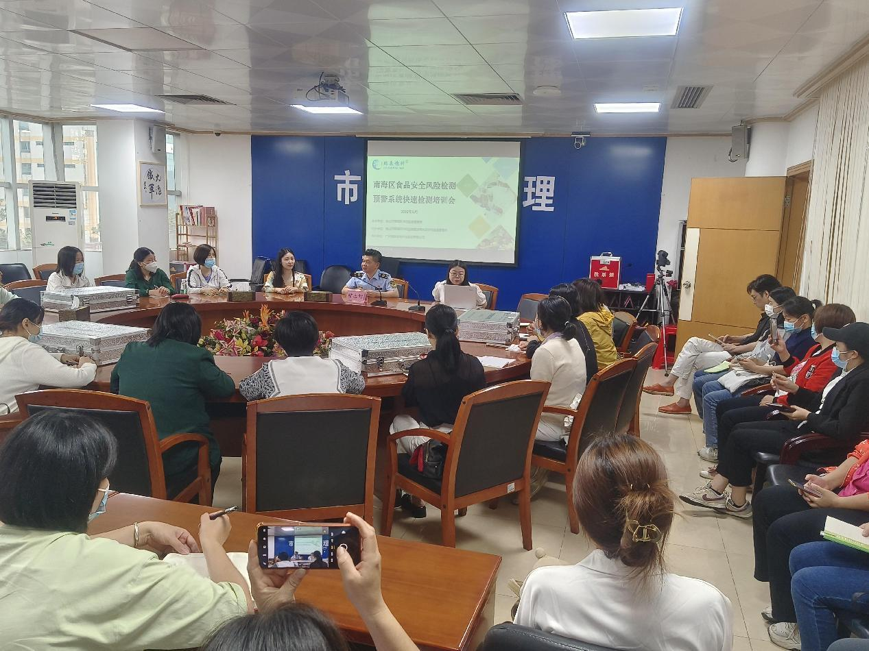 為確保2023年“南海區(qū)食品安全檢測(cè)大數(shù)據(jù)風(fēng)險(xiǎn)分析系統(tǒng)保障食品安全工作”項(xiàng)目的順利開(kāi)展,佛山市南海區(qū)市場(chǎng)監(jiān)督管理局委托廣州市瑞森生物科技股份有限公司會(huì)同南海區(qū)各鎮(zhèn)(街道)市場(chǎng)監(jiān)督管理所于2023年5月5日-19日期間為南海區(qū)全區(qū)各食品安全風(fēng)險(xiǎn)監(jiān)測(cè)點(diǎn)人員開(kāi)展食用農(nóng)產(chǎn)品農(nóng)藥殘留快速檢測(cè)培訓(xùn)工作。本次培訓(xùn)活動(dòng)由南海區(qū)各鎮(zhèn)(街道)市場(chǎng)監(jiān)督管理所與瑞森生物公司共同組織開(kāi)展。培訓(xùn)活動(dòng)規(guī)模龐大,參加培訓(xùn)的人員為南海區(qū)全區(qū)各食品安全檢測(cè)大數(shù)據(jù)風(fēng)險(xiǎn)分析系統(tǒng)保障食品安全工作項(xiàng)目風(fēng)險(xiǎn)檢測(cè)點(diǎn)相關(guān)操作人員及負(fù)責(zé)人,培訓(xùn)對(duì)象包括了南海區(qū)全區(qū)7個(gè)鎮(zhèn)街954個(gè)自檢單位(含:農(nóng)貿(mào)市場(chǎng),超市,配送企業(yè),酒店,餐飲店和學(xué)校,醫(yī)院,機(jī)關(guān)單位,敬老院等單位食堂)。