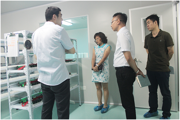 上圖為來(lái)訪領(lǐng)導(dǎo)參觀我司實(shí)驗(yàn)室、研發(fā)室及生產(chǎn)車間,聽(tīng)取我司技術(shù)人員的工作匯報(bào)。